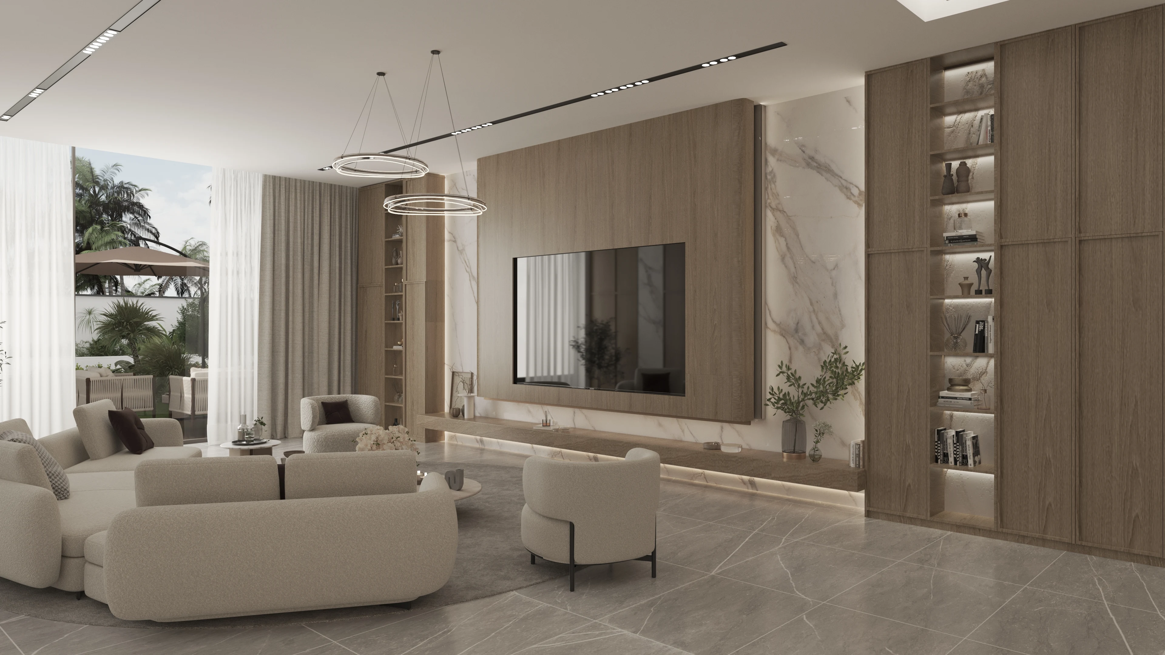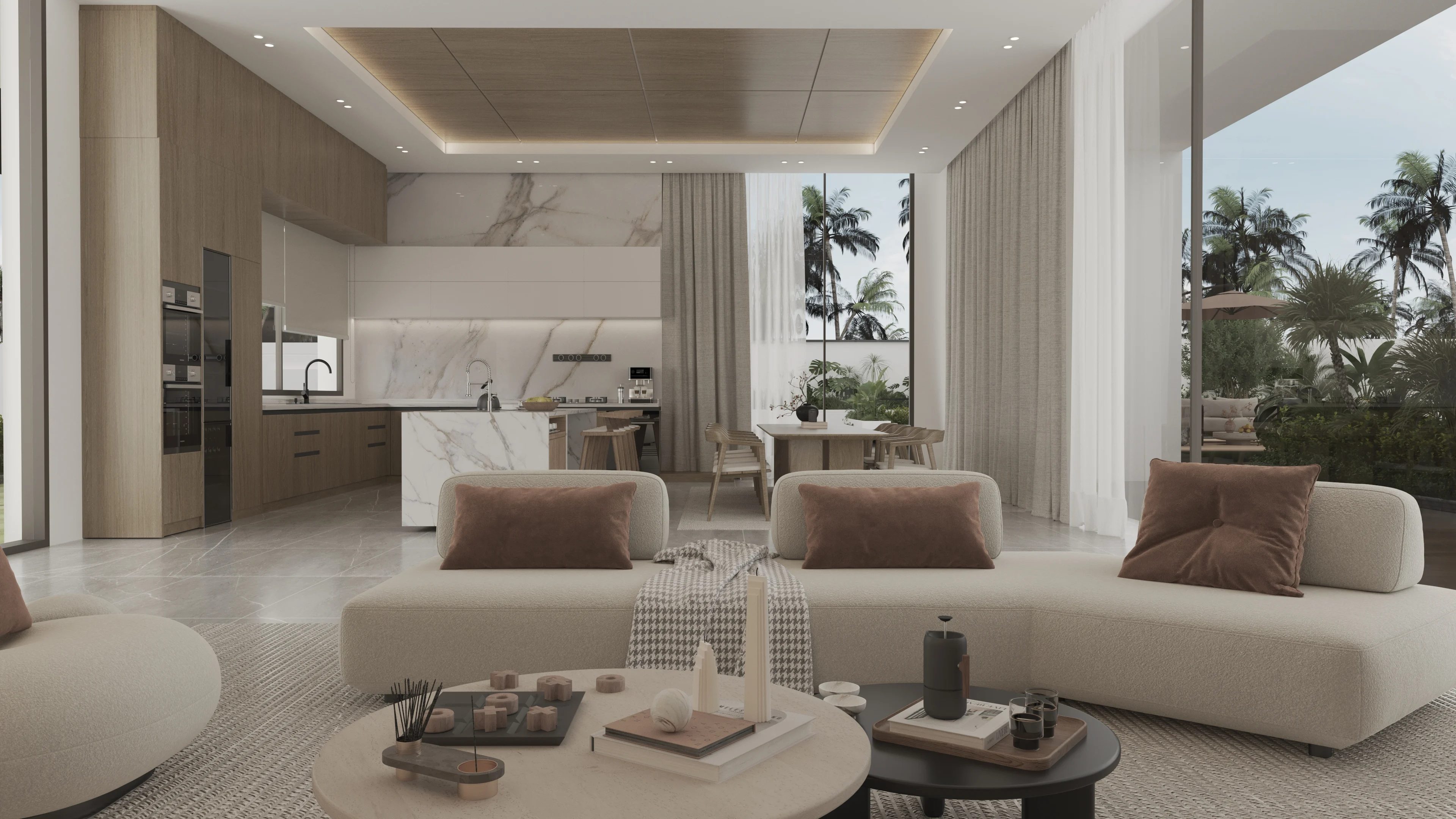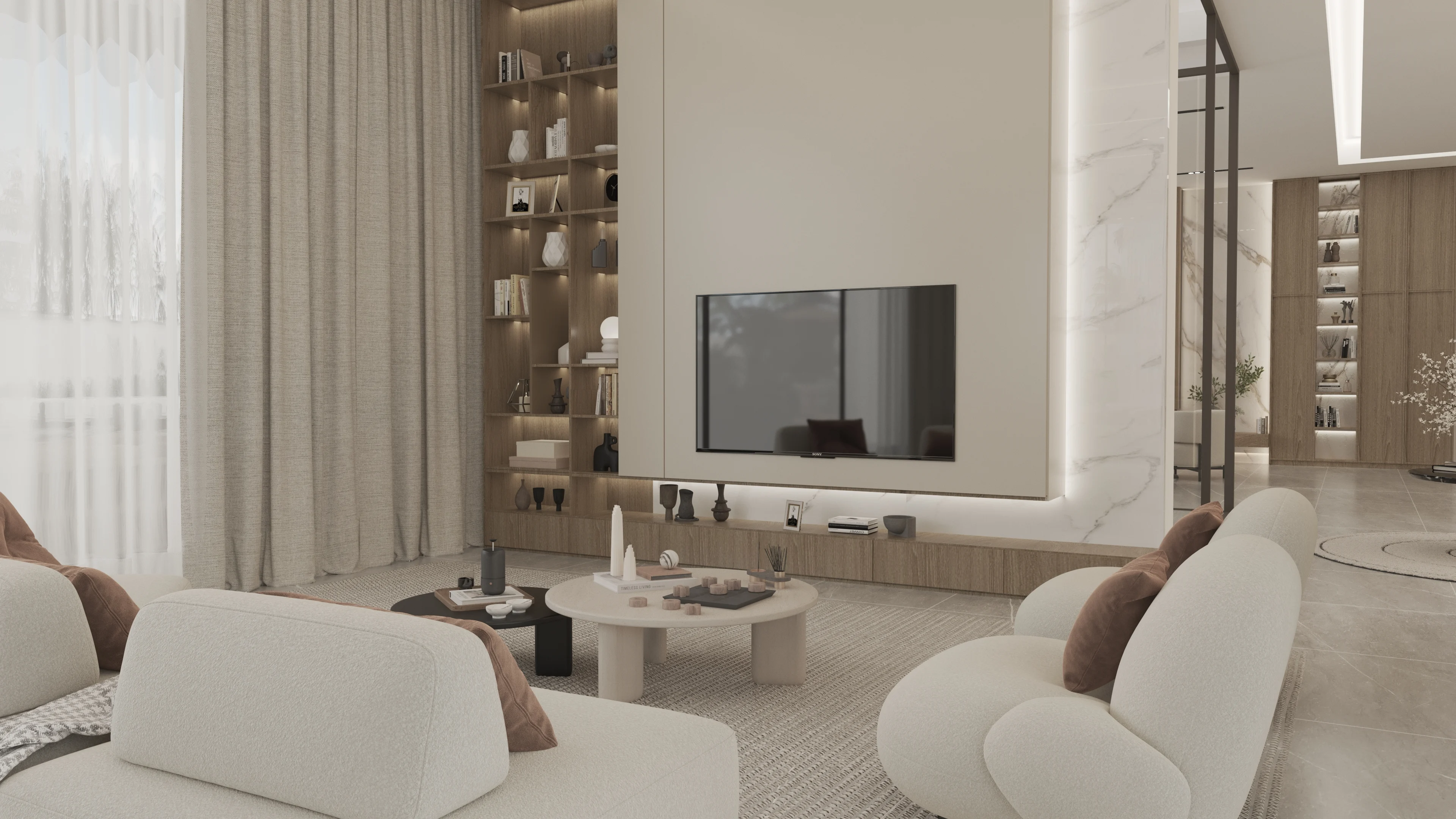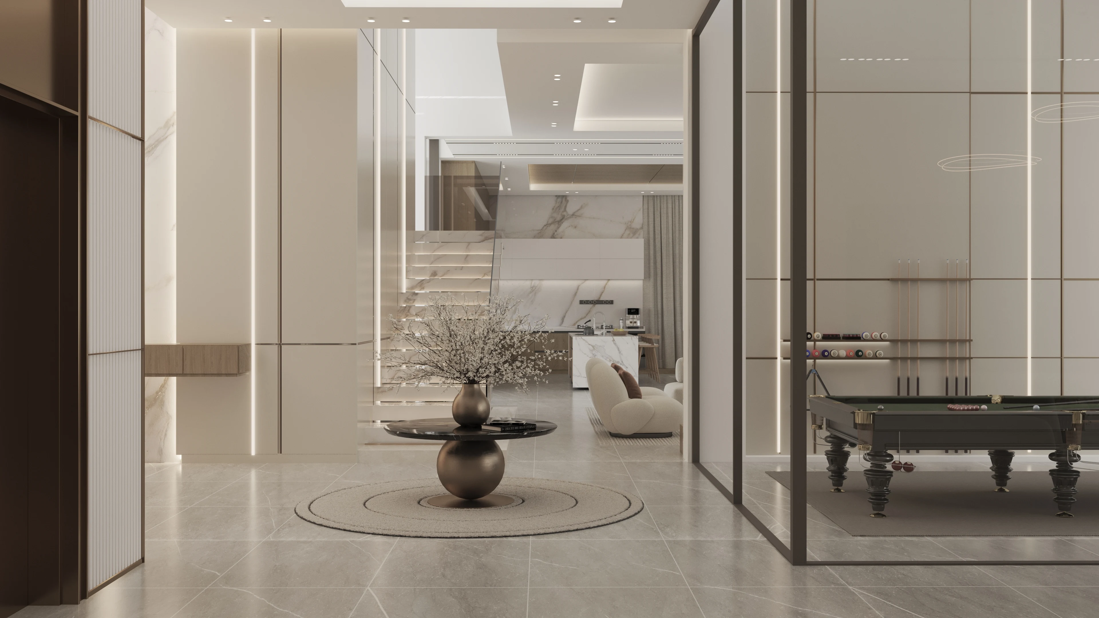 A luxury minimal villa interior blending clean lines, refined materials, and subtle sophistication to create a serene and elevated living environment