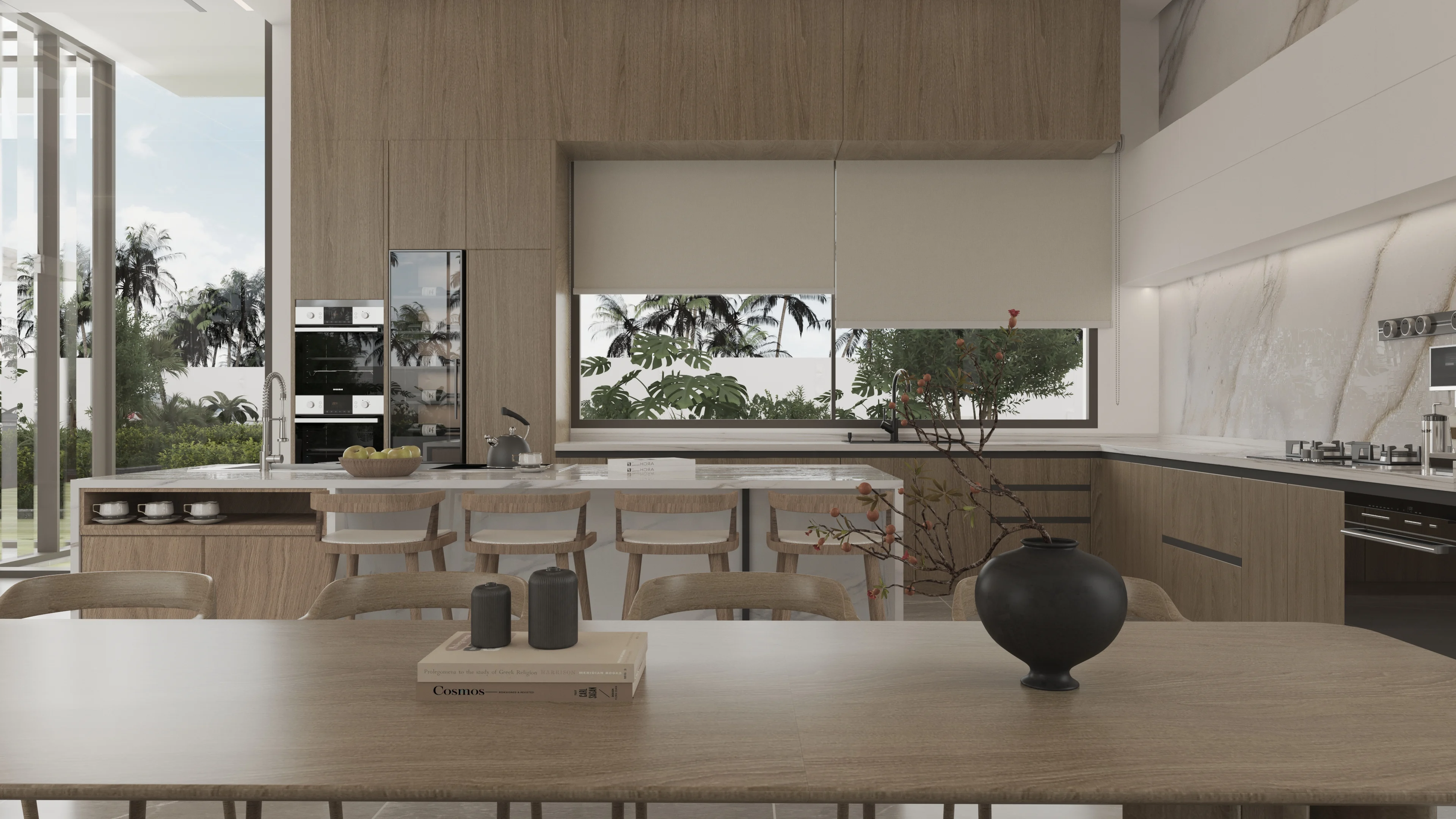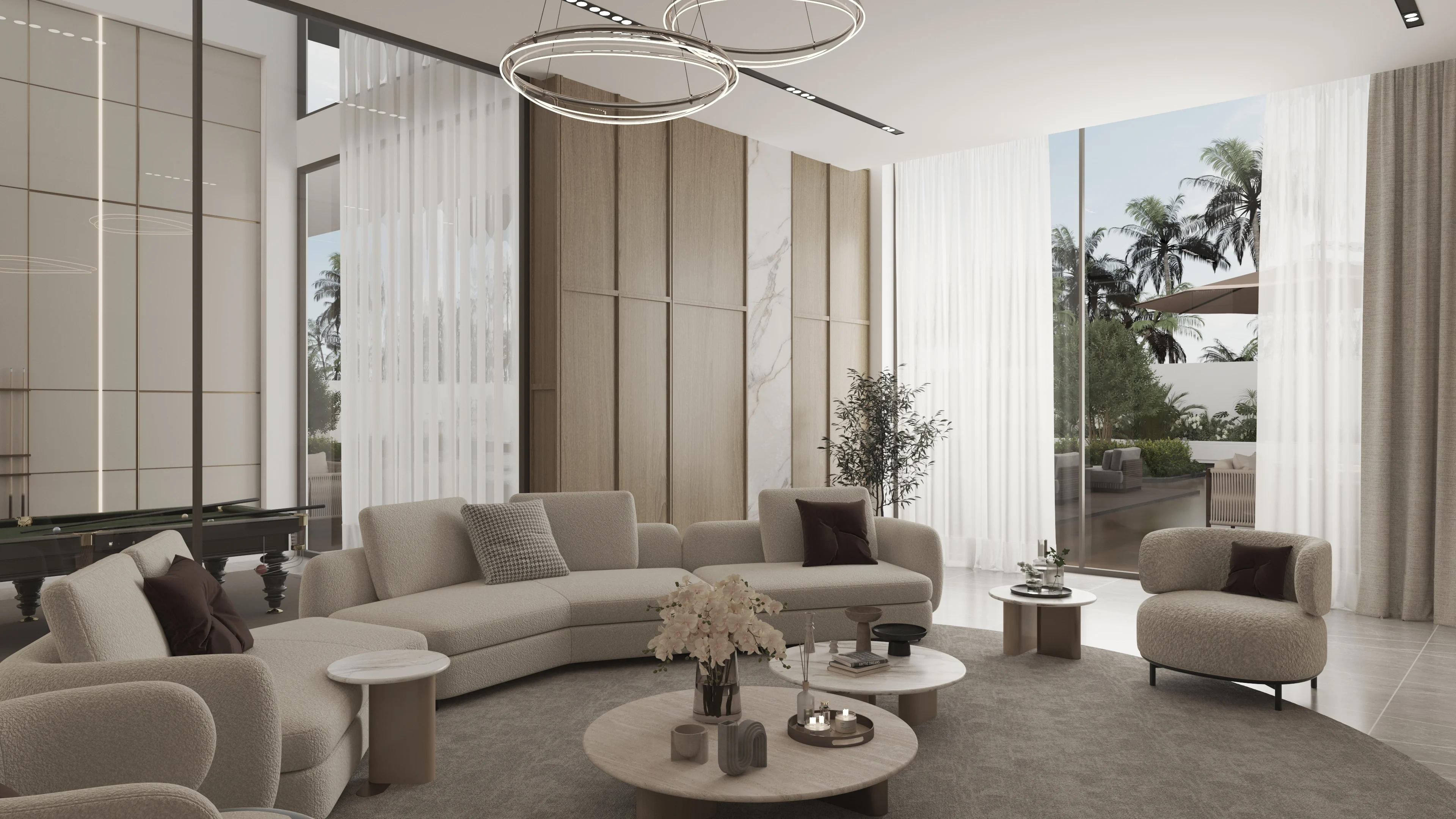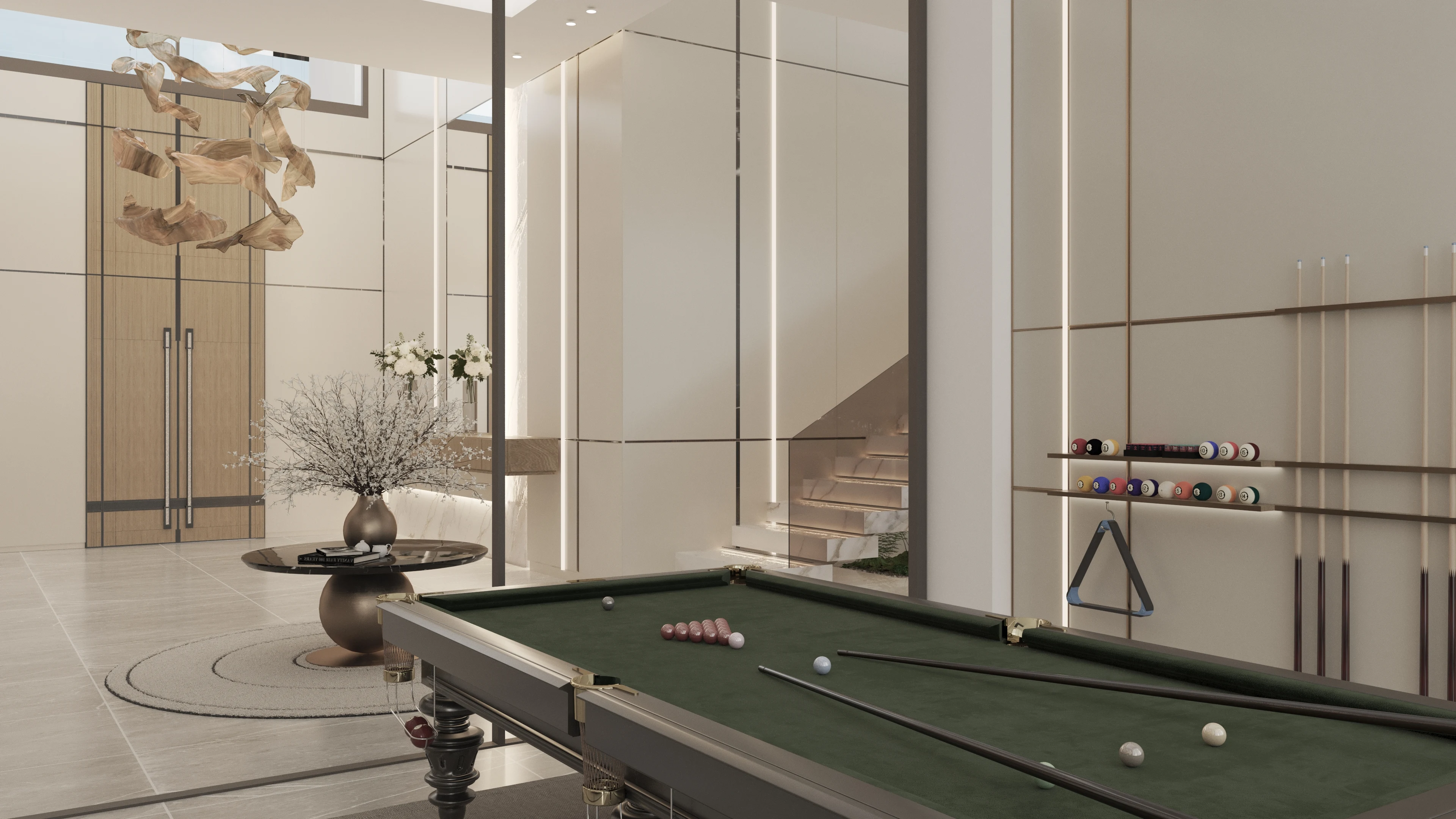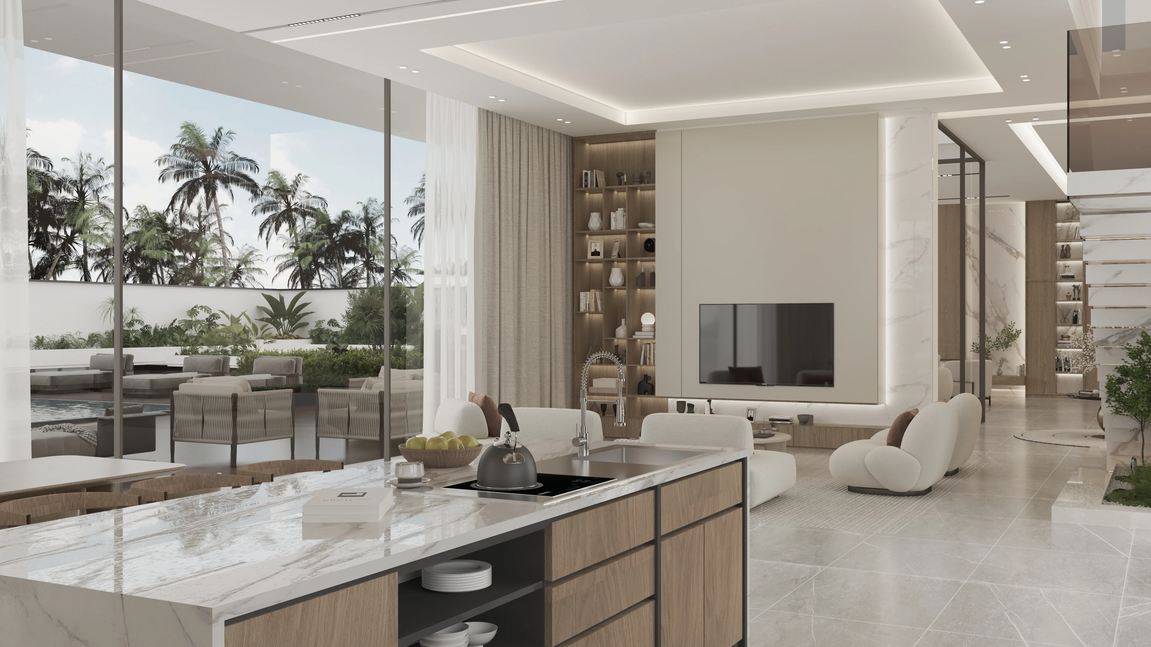 A luxury minimal villa interior blending clean lines, refined materials, and subtle sophistication to create a serene and elevated living environment