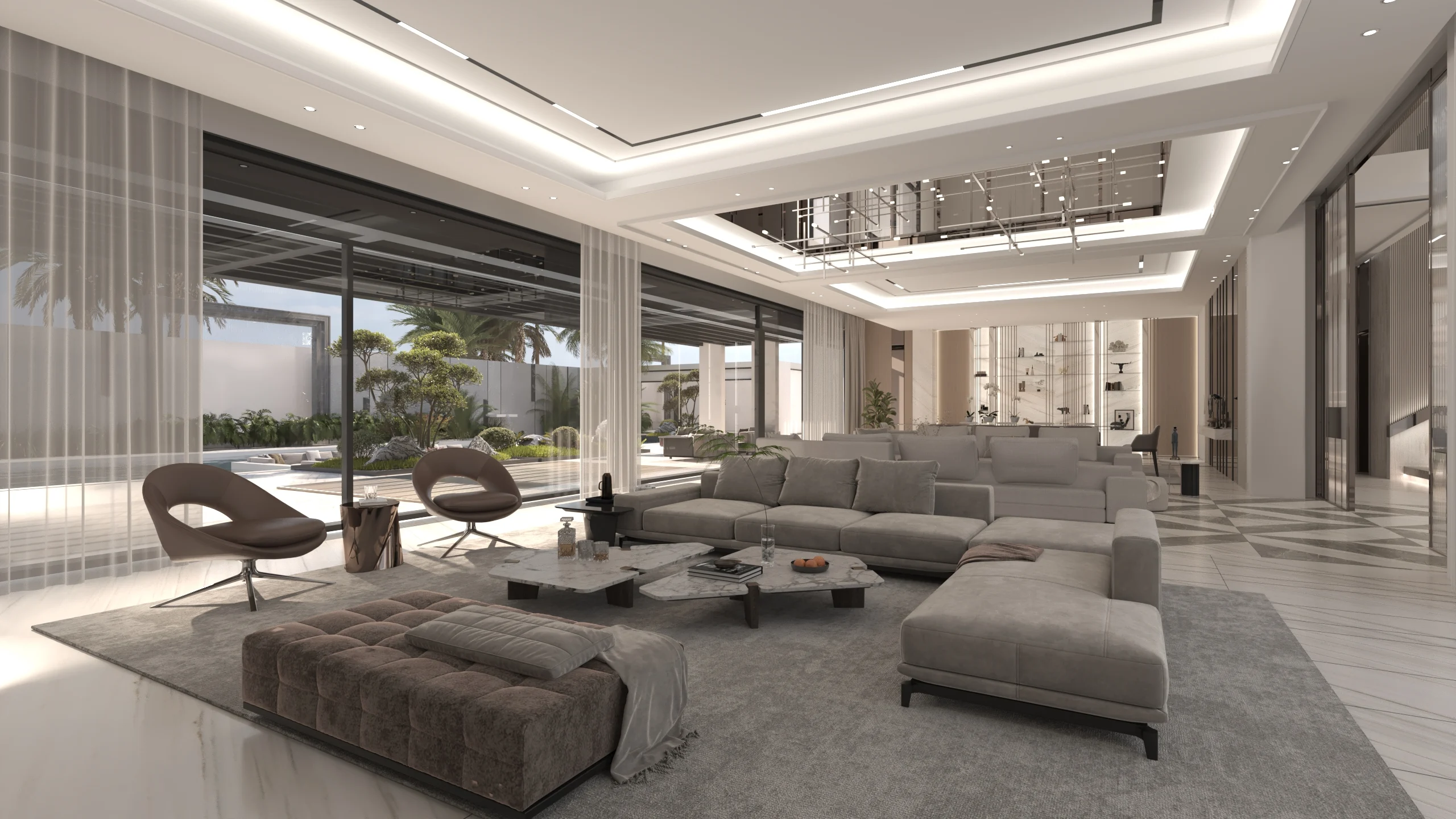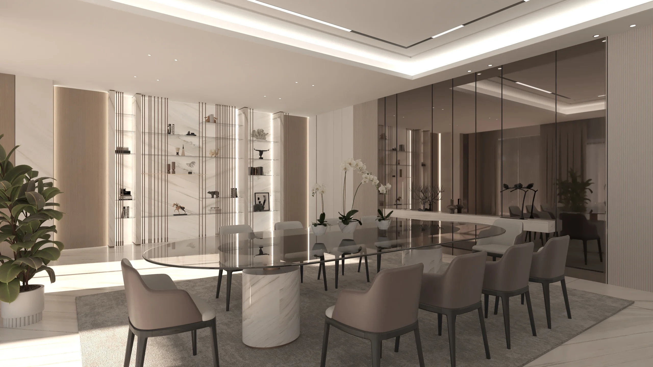 A pure architectural composition, where minimalism is elevated through precision, material richness, and controlled detailing. The project avoids excess, relying instead on proportion, light, and refined textures to express luxury